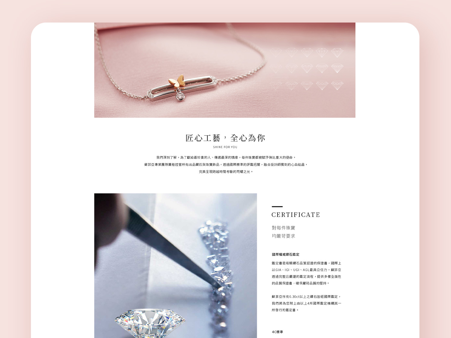 蘇菲亞珠寶購物網站設計 電商網站設計 網站切版 電商模組設計 shopline Disclaimer +免責聲明+免責聲明+免責聲明+ 本站展示案例,如非特別註明,其著作財產權均屬時任公司行號/客戶所擁有。 本站展示案例均為本人親身參與。 專案的成功必然是團隊共同努力的豐碩果實,絕非一人獨立完成,故案例中均會特別標明本人實際參與之項目與專業貢獻,特此說明。 刊載之案例如有版權疑慮,請與本人聯繫,我將在收到訊息後盡快回覆。 CONTACT ME 讓我們成為 一起工作 的好夥伴 CONTACT ME 讓我們成為 一起工作 的好夥伴